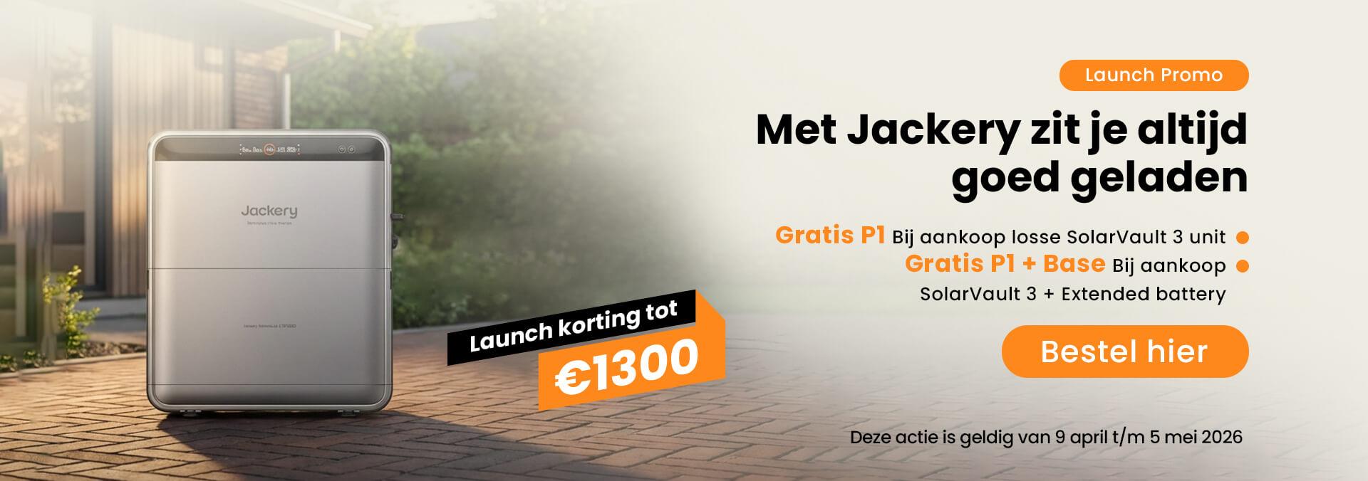 Met de Jackery SolarVault 3 sla je die energie op en gebruik je deze op een later moment. Zo verhoog je je eigen verbruik van ±30% naar 70–80% en bespaar je direct op je energiekosten.