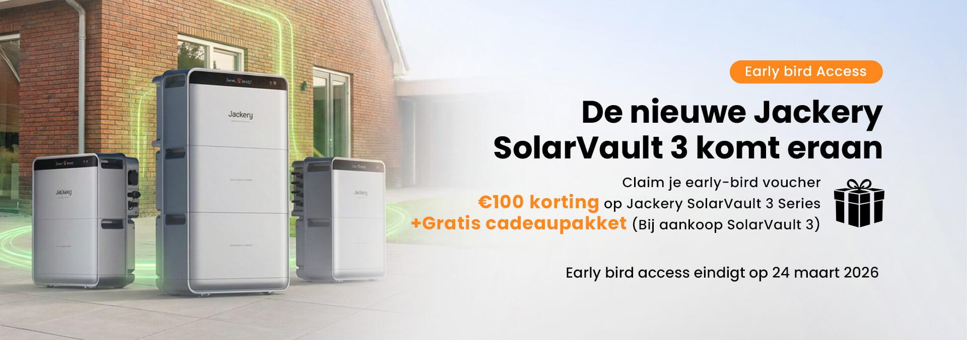 Claim via onderstaand formulier een €100 korting voucher voor de nieuwe SolarVault 3 Serie. Deze voucher is geldig tot en met 30 april 2026.