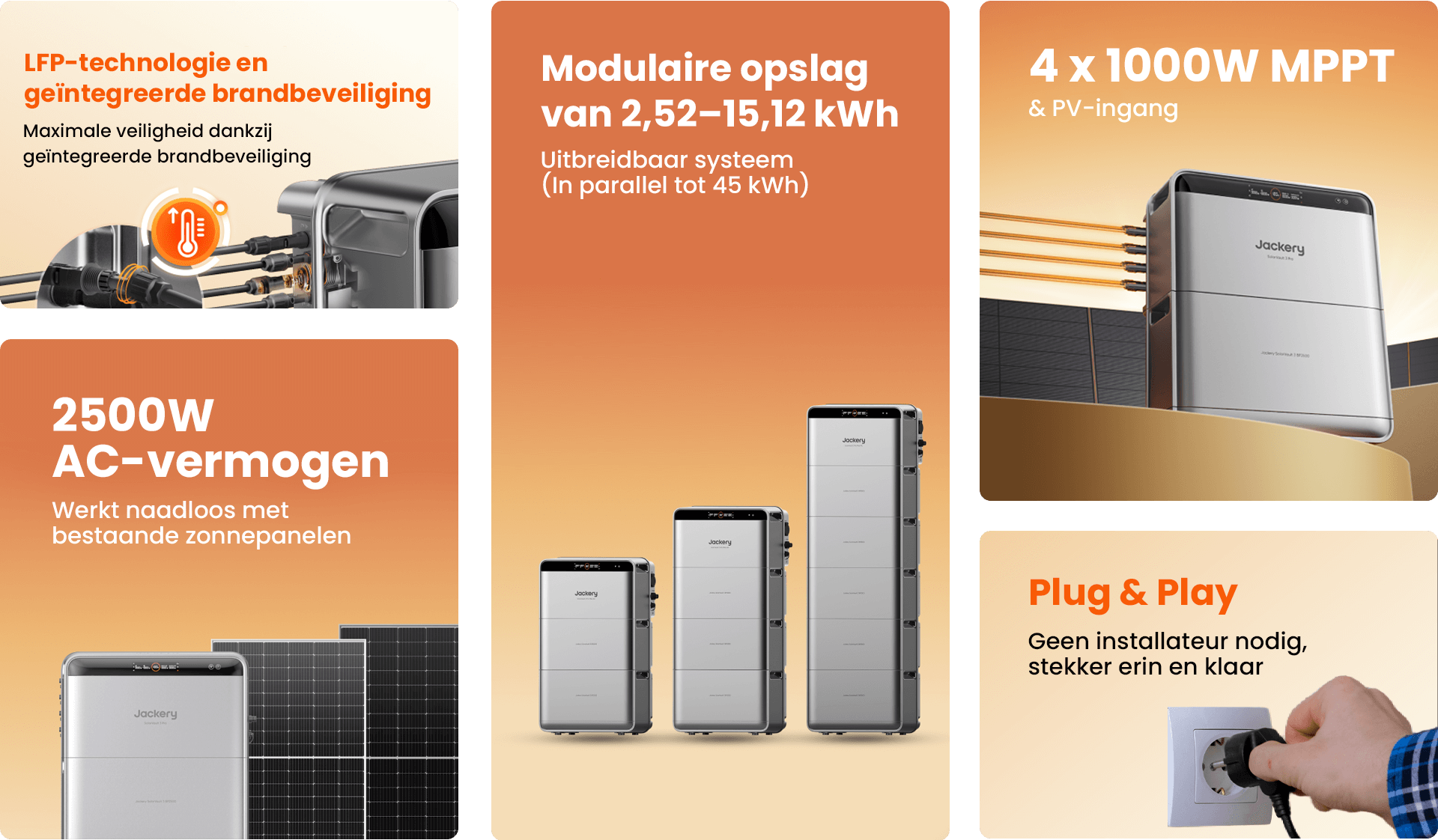De opslagcapaciteit start bij 2,52 kWh en is uitbreidbaar tot 15,12 kWh met maximaal vijf BP2500 batterijmodules.